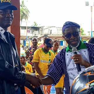 He presented two motorcycles to the Maryland County Police Detachment to improve patrol capacity and enhance community security, along with another motorcycle donated to his newly established radio station.